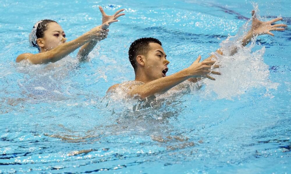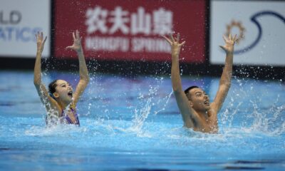 I cinesi Wentao Cheng e Haoyu Shi trionfano nella finale del doppio misto libero, ultima gara dei Mondiali 2023 di nuoto artistico. Alla Marine Messe Hall A...