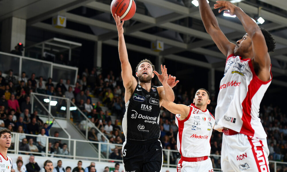 La Dolomiti Energia Trentino rimarrà ancora in vetta al campionato di Serie A almeno per un’altra settimana. La squadra di Paolo Galbiati si prende anche lo...